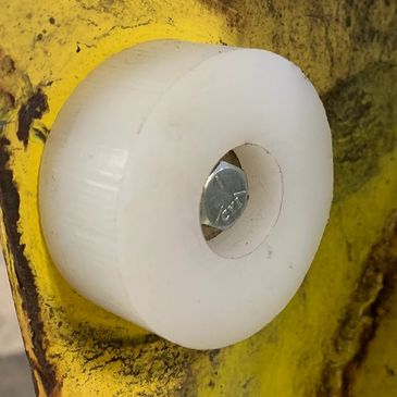 We manufacture numerous molded plastic parts for the lawncare and landscaping industry. These UHMW plastic parts include industrial lawnmower striping rollers that we manufacture in our Hutchinson, Minnesota plastic manufacturing shop. We mill these metal parts on our cobot-assisted CNC lathe and overmold them with UHMW poly. We also sell